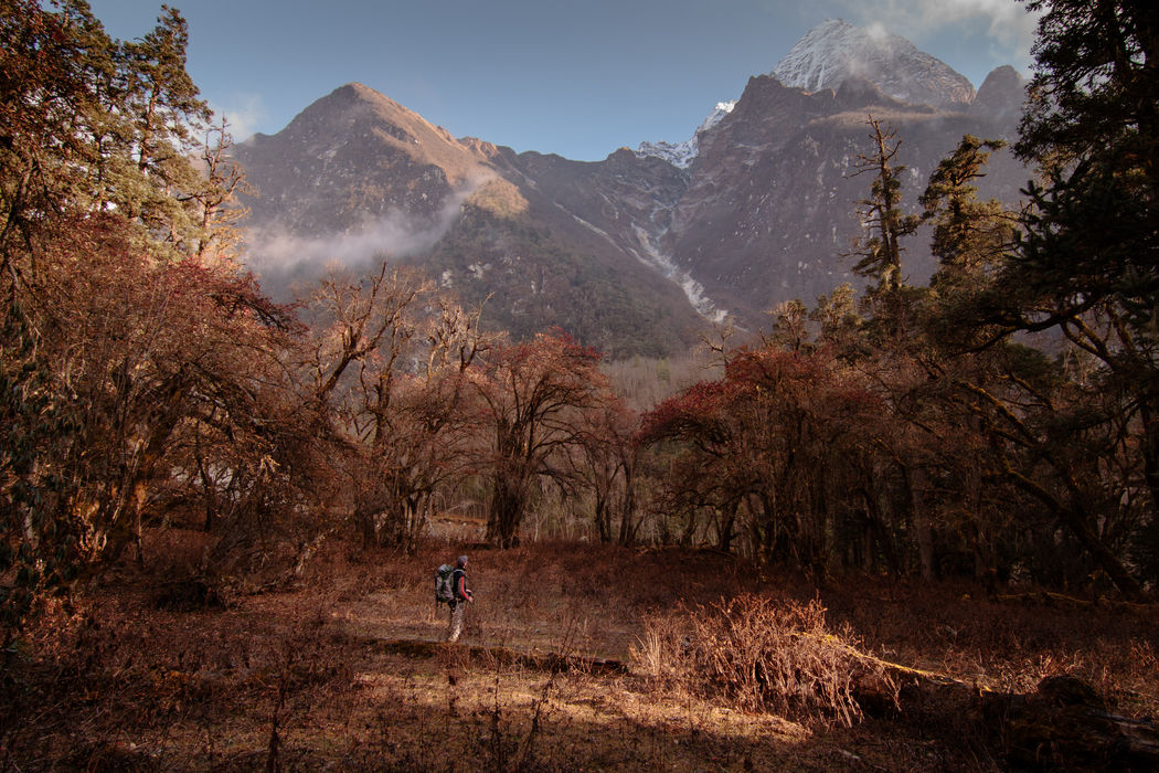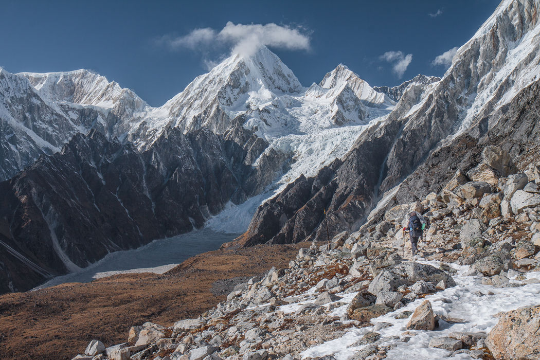 Authentic 2-week trail with views of the eight-thousander over 5106 m Larkya La pass.