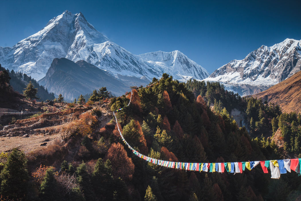 Remote Manaslu circuit trek around around 8th highest mountain (8163 m)